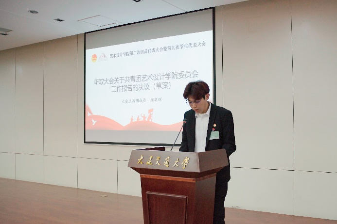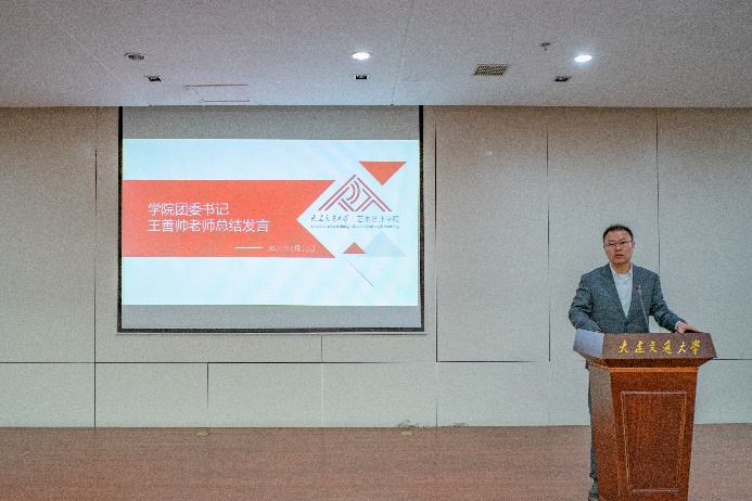 王善帅老师代表学院团委做工作报告,从三个方面回顾与总结了近一段时间的工作,并对未来做出工作规划与展望。