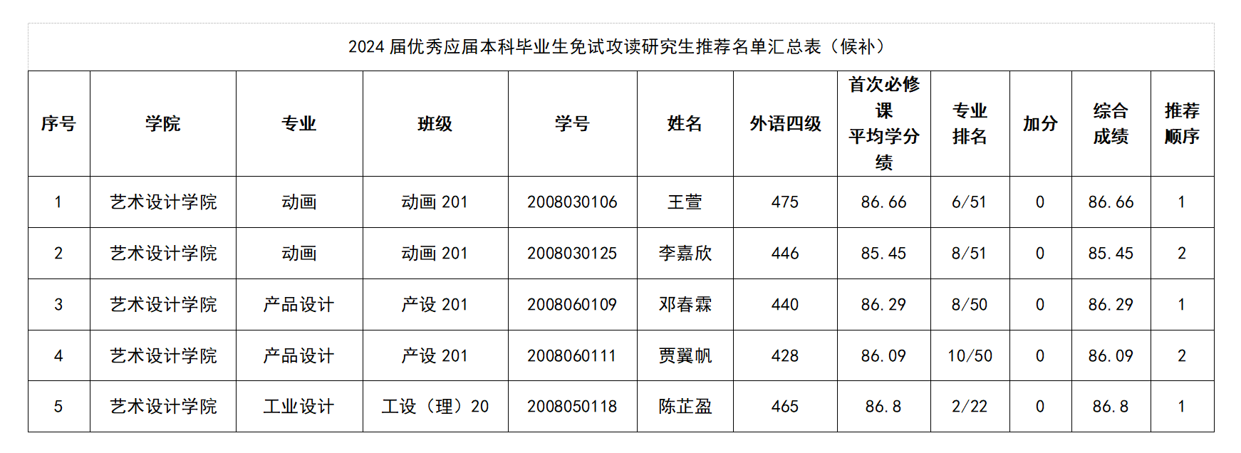 亚洲色情 2024届优秀应届本科毕业生免试攻读研究生推荐名单公示
