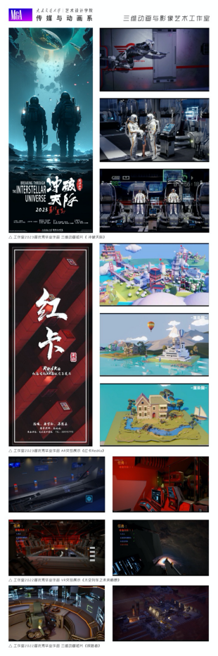 三维动画与影像艺术工作室成立于2019年,前身为”三维动画与虚拟交互工作室“,经过三年的教学实践与探索,根据行业对人才的需求,不断优化和完善课程体系,结合2022新版培养方案,于2022年正式更名为“三维动画与影像艺术工作室”。本工作室旨在培养适应数字时代与信息社会发展的动画、影视、游戏、三维虚拟交互人才。培养掌握三维虚拟交互展示、三维动画、影视特效的创作制作及相关工具应用的基础知识、基本理论和方法,能在生产企业服务及文化产业等相关领域从事三维虚拟交互展示、动画、游戏、影视后期的创作、制作、传播的应用型专门人才。